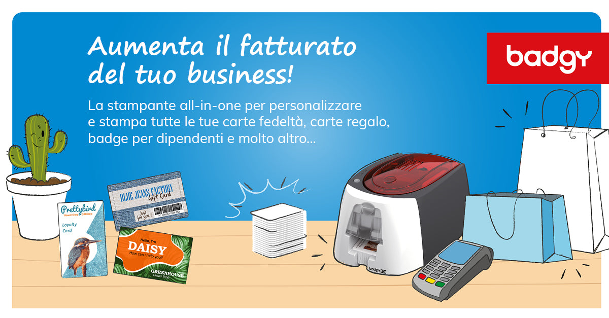 ![Badgy KIT per 100 stampe: 100 carte vuote e 1 nastro per 100 stampe [CBGP0001C] - ITPartners](http://www.it-partners.it/cdn/shop/files/CBGP0001C_complete-pack.png?v=1740418482&width=813)