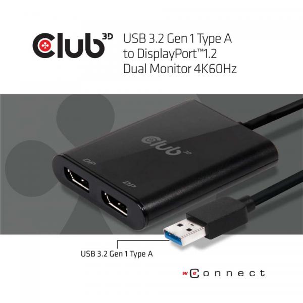 CLUB3D SPLITTER USB TYPE A 3.1 GEN 1 TO DP 1.2 DUAL MONITOR SUPPORT 4K@60HZ [CSV-1477]
